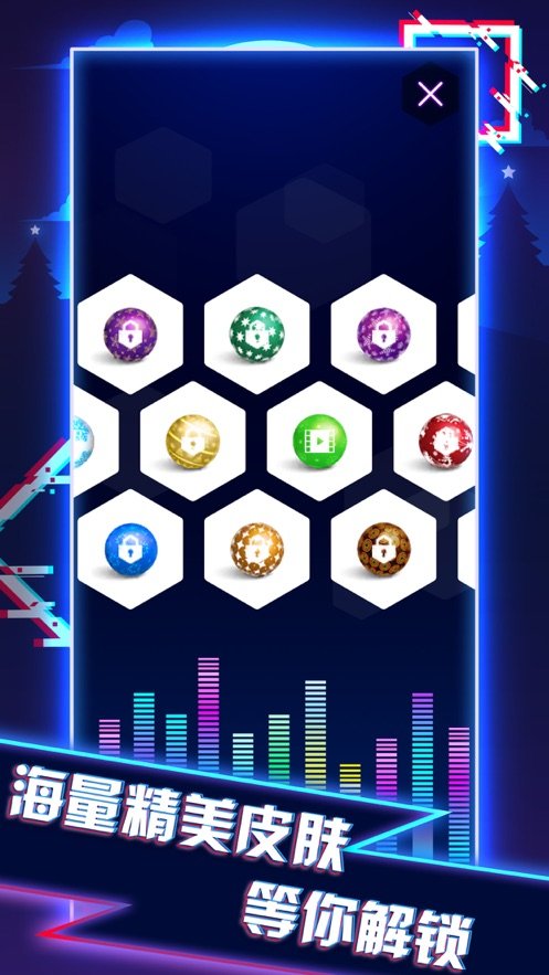 球球你跳一跳游戏是一款非常简单容易上手的音乐节奏跳跃类型的游戏,在这场精彩的游戏当中,玩家们可以尝试非常多的好玩的挑战和冒险,并跟随着音乐的节奏让小球不断的跳跃和前进。小心!不要错过屏幕上的每一个方块,抓住机会才能够不断的前进,完成更多的跳跃任务,领取丰厚的奖励。