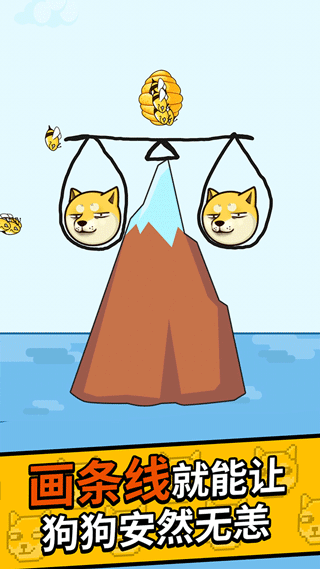 操作上并没有很难,只需要画一条线就能过关。有两种方法来保护狗狗,一种是圈住狗狗,另一种是圈住蜜蜂,不让蜜蜂伤害到狗狗。游戏里还有闯关道具,玩家可以在需要的时候进行合理利用,方便闯关。