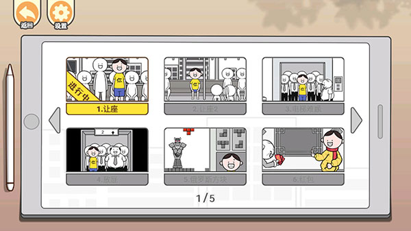 1、游戏的关卡很多的,乘车、公司会议等场景都有,你要及时的选择。