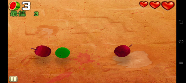 1、全新的三滴血设定:原先的3个红叉变成了“靴猫”的3滴血,每掉一个水果就掉一滴血。2、救命的“魔豆”:在满血状态下,切割到这颗小豆子能给你加上额外的25积分,而当你血不满时这个小豆子能帮你补一滴血。