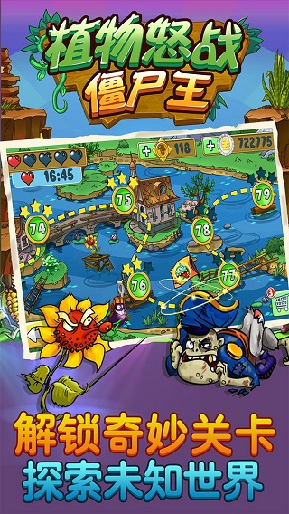植物怒战僵尸王是一款特别好玩的益智塔防策略类手游,游戏画风所采用的卡通风格,适宜于所有不同年龄段玩家,在这里有着海量关卡可供玩家们挑战,且每个关卡各自拥有不同的作战任务,成功挑战后会得到相应的植物种子,种子功能类同射击游戏里的武器,在此玩家需合理搭配植物种子,并为最终决战僵尸王做准备。该游戏在某些形式上与玩家所熟知的植物大战僵尸有些类似,同样的植物大战僵尸,同样的闯关冒险,但当前游戏拥有属于自己的独立世界架构,操作玩法、僵尸种类与武器系统,也正是由于僵尸种类的丰富性,才造就了这款游戏在操作上与放置版的植物大战僵尸系列有所不同,共计三条防守路线的进攻方向,需要玩家控制植物的射击角度,不过僵尸会上、中、下进行位置变换,尽可能的在僵尸抵达前,将其全部消灭!另外,在植物怒战僵尸王游戏中还有除植物种子以外的其他武器系统,这点如同常规游戏里的道具,如不可触及、急救、空袭等。最后,游戏玩法比较难的另一个点则在于植物的装弹量具有一定的限制,每次使用完毕后,植物会重新装弹,在这期间的空白期非常不利于玩家防御,因此合理规划每颗植物的子弹,可以帮你更快的完成挑战哦~