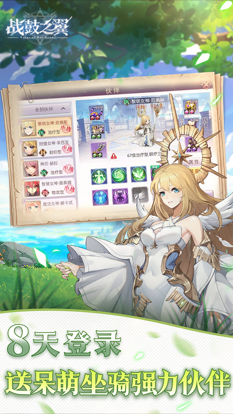 战鼓之翼游戏是采用西方神话题材而打造的一款非常好玩的回合制手游。在游戏内应用了最新的引擎技术,从而使得所有场景建模和角色的立绘,以及在技能的特效上都格外的精致。能够让玩家更加容易带入游戏当中,尽情的在这场游戏内享受一场极佳的视听盛宴。