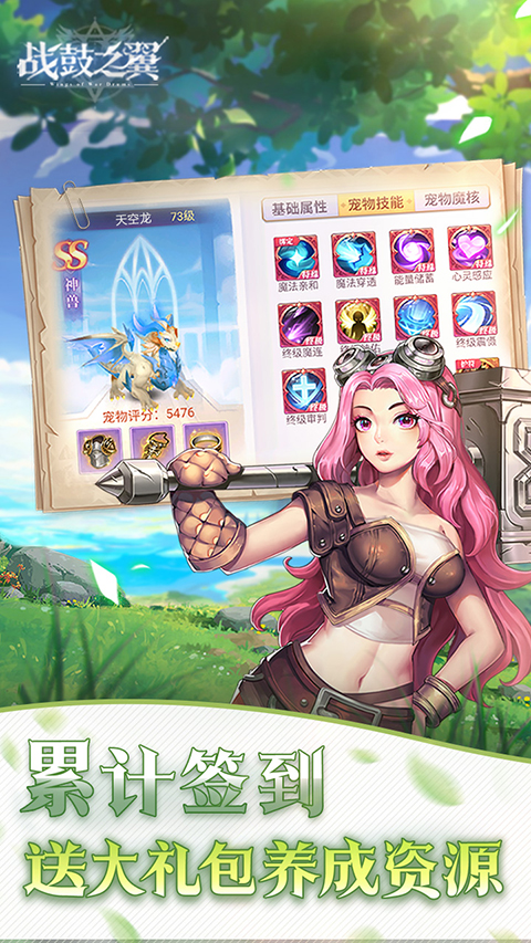 当然,战鼓之翼不但在美术方面极为优秀,在游戏内容上也丝毫不逊色,有着丰富的组队、公会、交易系统等社交功能,让玩家可以自由的结识更多的伙伴来共同游玩。而且该游戏为了辅助玩家更好的游玩,还有着大量福利赠送給玩家。即上线就享受永久0.1折扣充值,免费赠送各种强力战宠辅助玩家战斗。对此,感兴趣的小伙伴快来下载游玩体验一下吧!