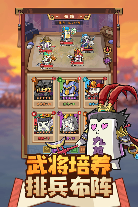 2、玩家可以从弱小开始,通过不断地挑战和冒险,提升武将的能力,解锁更强大的技能,亲手培养出属于自己的三国英雄团队。