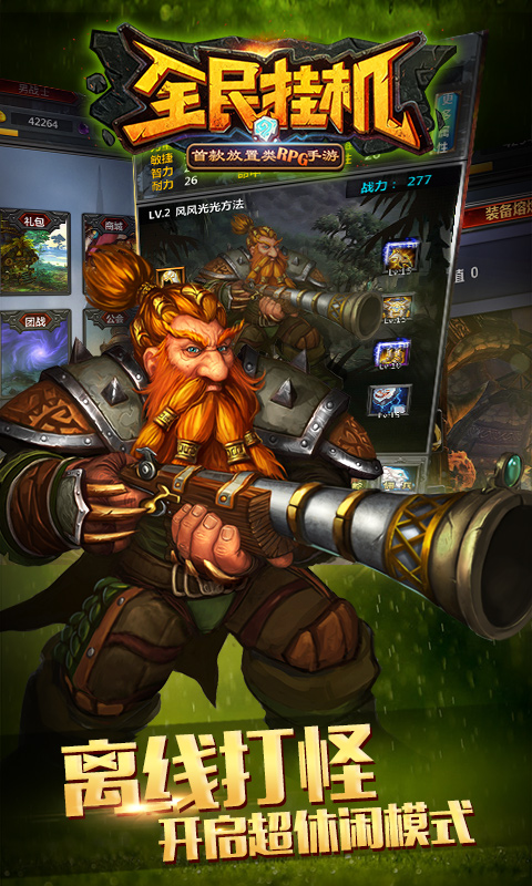 《全民挂机》是2014年最新最懒的新派放置RPG手游。这款以精细的画风、创新休闲的挂机玩法向经典致敬!游戏内三个职业任意选择、炫酷神器亮瞎全场、经典副本完美重现、史诗级BOSS等你来战、公会争霸谁与争锋、美女陪聊同城交友。《全民挂机》开启国民挂机游戏新时代,游戏不止是爽,一起来吧!