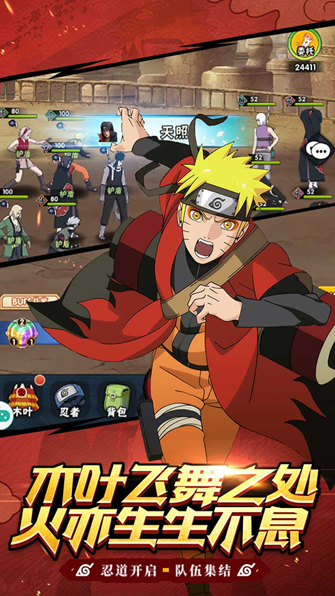相信不少玩家都看过三大民工动漫之一的火影忍者,我们伴随着鸣人从人人讨厌的小鬼成长到庇佑众生的火影,猴子的那句”只要有树叶飞舞的地方,火就会燃烧,火的影子会照耀着村子,然后新的树叶会再次萌芽。”更是伴随整部剧。现在小编带来一款可以让我们体验到火影那充满热血与激情的游戏侍忍者火影手游,在这款游戏里面玩家可以收集大部分原著熟悉的角色,有着宇智波斑、鸣人、佐助等大家熟悉忍者。除此之外,该游戏玩法也是非常简单的,玩家只需根据不同忍者的定位,来搭配自己想要的整容来进行战斗,从而可以轻松取得游戏的胜利。感兴趣的玩家不妨下载体验一下。