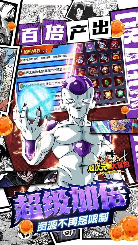 超次元大冒险是一款以人气动漫《龙珠》为题材的策略卡牌回合制手游,它完美再现了动漫中的经典剧情。游戏画风精美,人物角色生动,以及原始背景音乐和音效,带给玩家沉浸式游戏体验。游戏的核心玩法围绕剧情闯关和回合制战斗展开,玩家可以招募孙悟空、布尔玛、贝吉塔等众多高人气角色,并对他们进行培养和升级,并根据不同角色属性安排出场阵容和站位,完成各种战斗冒险。