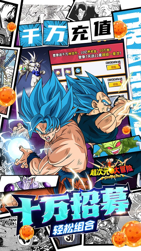 1、玩家开局就可以领取神龙助力大礼包,领取UR英雄超蓝孙悟空以及各种福利礼包。