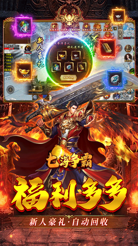 七海争霸是一款经典好玩的大型传奇类角色扮演手游,以精美的画面、高爆率的装备掉落、丰富的剧情和社交互动为特色,重现了经典传奇的无上荣光,还提供了自动回收、全屏拾取、高爆率等便捷功能,让玩家更加轻松地享受游戏乐趣。在七海争霸游戏中玩家累计登录、在线时长以及杀怪,都能让你无限领取元宝,元宝拿到手软。丰富的福利体系,旨在为玩家打造轻松、畅快、激情的游戏体验,让你毫无负担地沉浸在热血传奇的世界中,尽情享受战斗与成长的乐趣 。