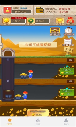 不断挖矿赚取财富,解锁产量更高更好的矿地!