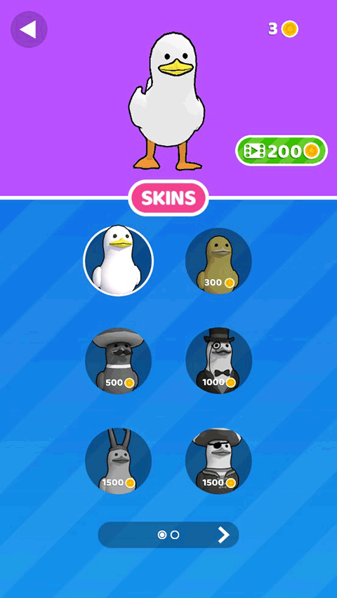 1、经典的跑酷玩法,操作鸭鸭让他可以不撞上这些障碍物。
