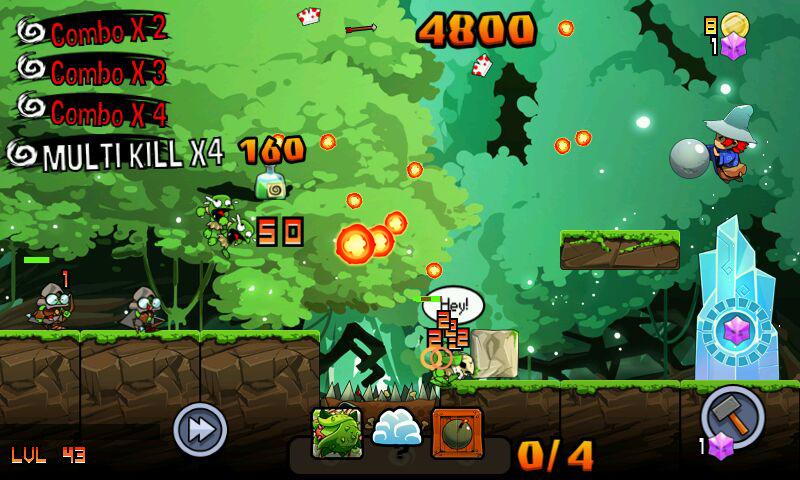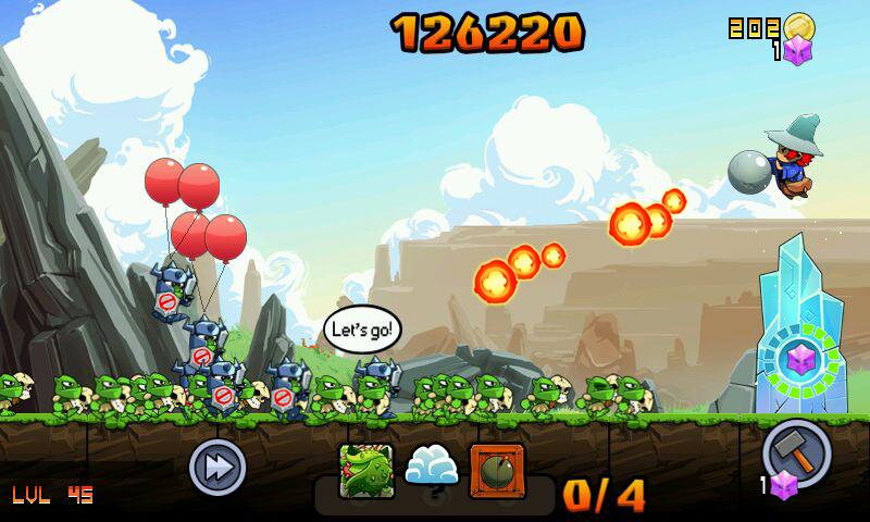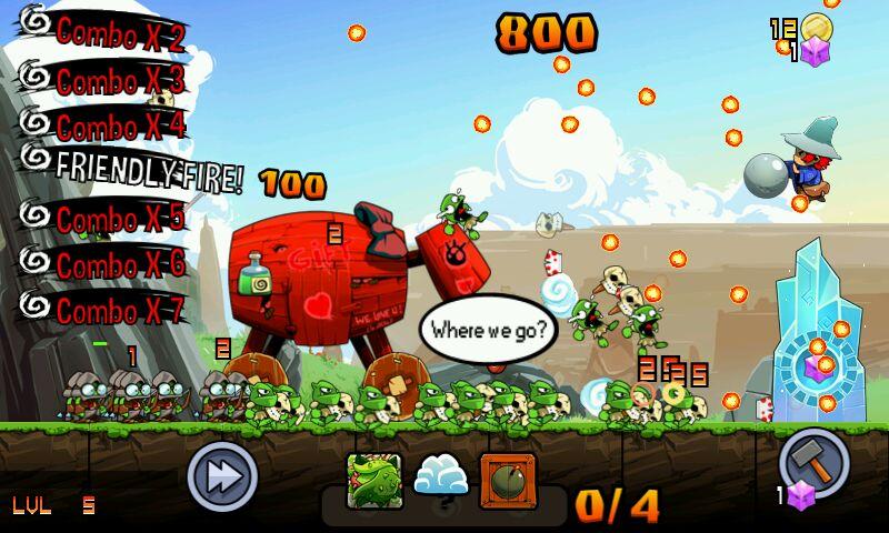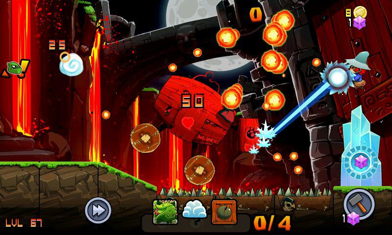 点击屏幕可释放你的法术来制造火球、寒冰射线等等给予敌人痛击,也可以用魔法把它们拖到天上然后往地上狠命一砸,总之怎么能高效消灭哥布林就怎么来。