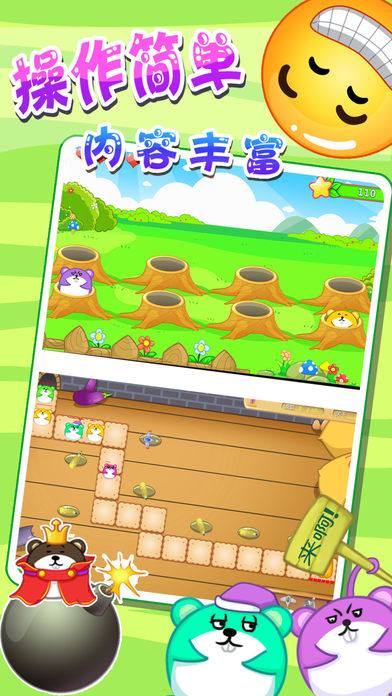 1、欢乐的游戏音乐可以让孩子更加更快的融入到游戏当中去,尽情的消灭地鼠哦。