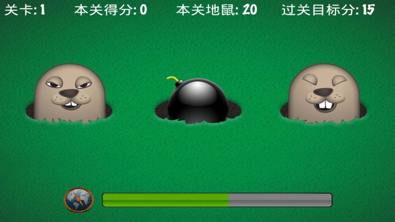 地鼠不断的钻出地洞和缩回地洞,玩家必须手起槌落,打中地鼠;