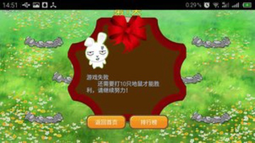 如果玩家打中地鼠的数量没有超过关卡设定的打中目标数量,则游戏结束;