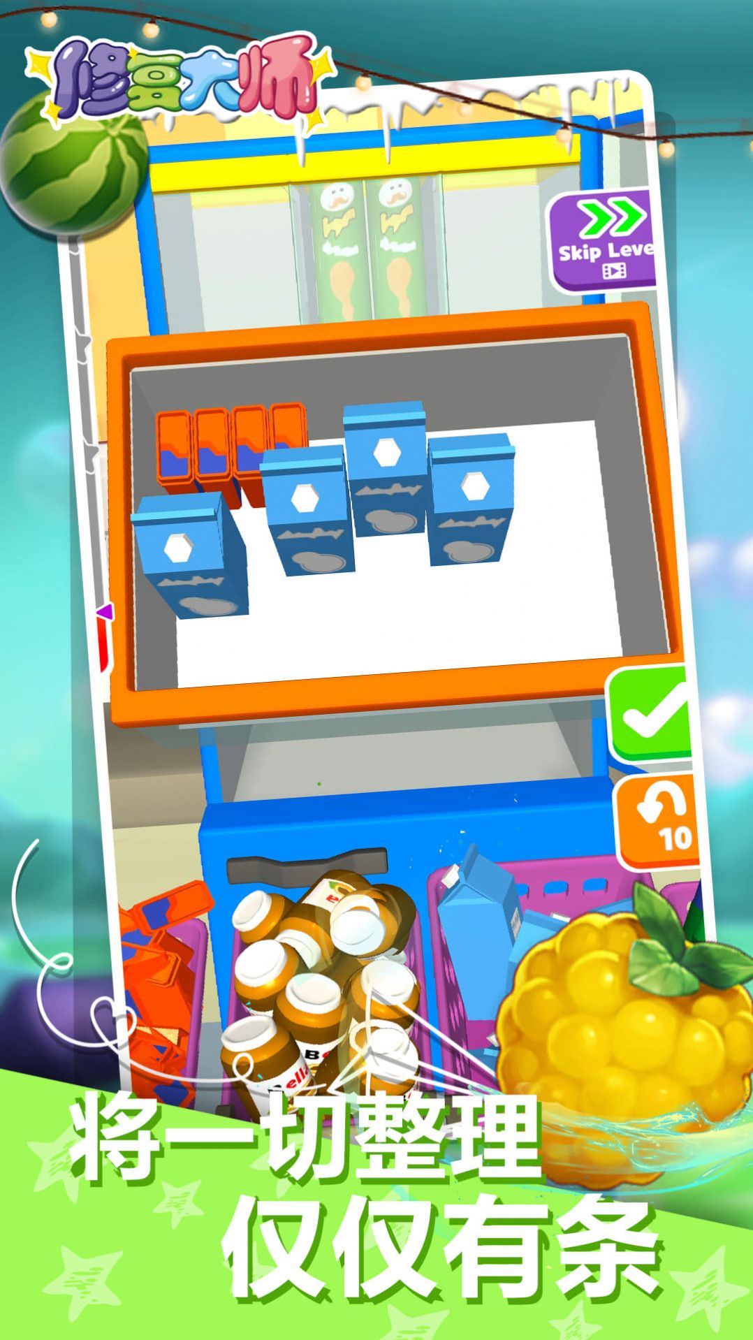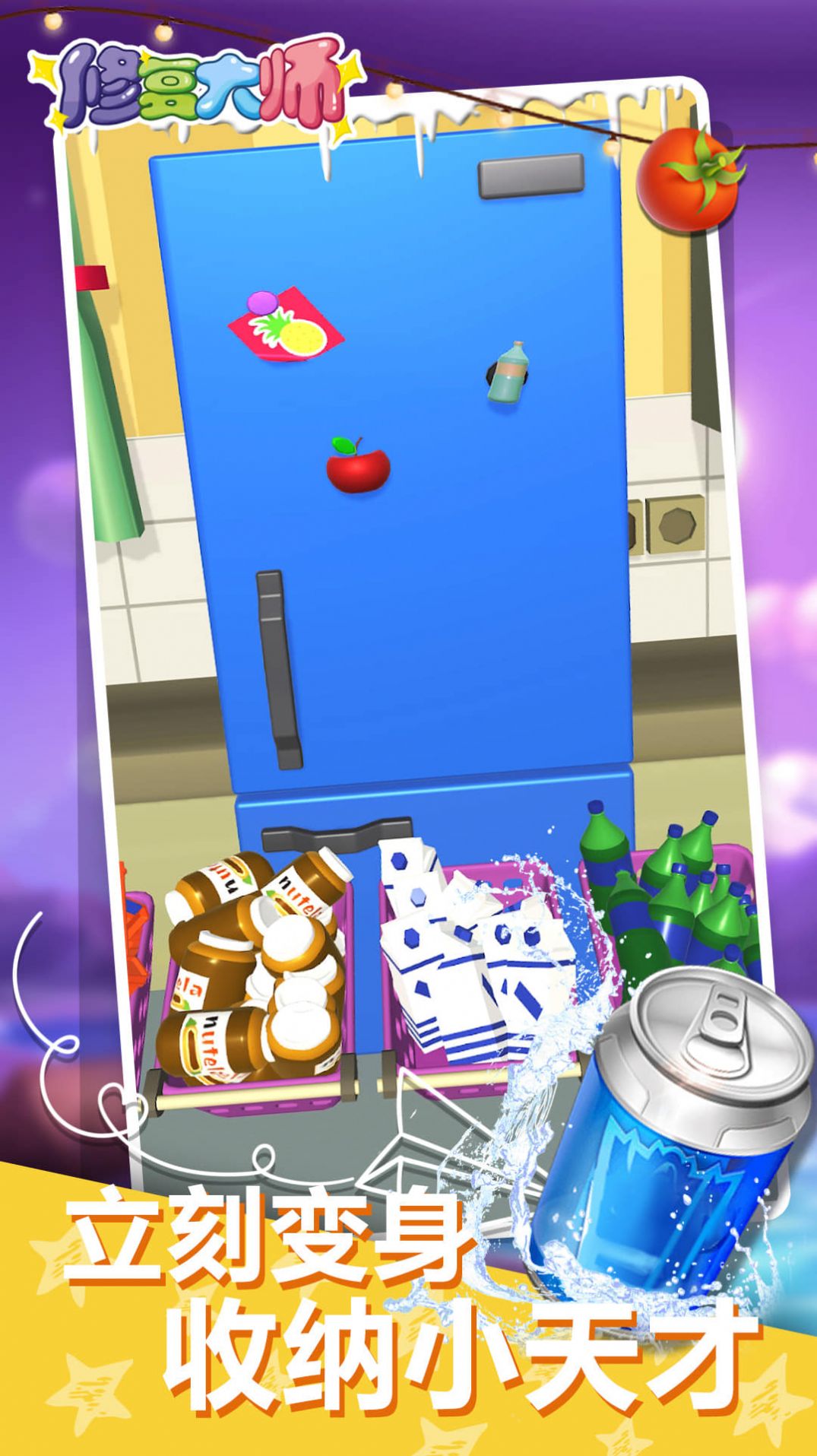 2.想办法把这里的冰箱填满。在游戏中,可以看到关卡中的各种物品;