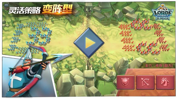 兵种分为骑兵、步兵、弓兵、投石车等,特点鲜明又存在着致命的弱点。只有情报侦察到位,策略明确,同时适时地配合英雄的军团技能,取长补短,方可决胜千里。