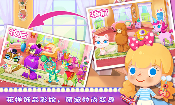 1、打开糖糖宠物音乐派对游戏,糖糖和萌宠闪亮登场,一场盛大的派对即将展开,选择一只宠物,为它打造惊艳的舞台造型;
