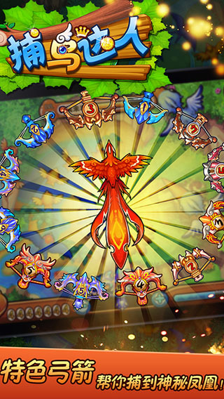 游戏中虽然有很多不同的鸟,但是只有两种最高级的鸟:一种是老鹰,一种是凤凰。如果你想要拿到更多的奖励,那就需要你拿出实力了。一般情况下,猎捕老鹰可以用普通攻击或者激光来电击,捕到后就获得奖励;但是捕凤凰就有点难度了,激光电击对它都起不了作用,你需要尽量在它旁边有其他鸟的时候打,不管你用什么方法,一但捕中凤凰,就有可能获得神秘奖励哦。喜欢的话,就赶快下载试试吧!