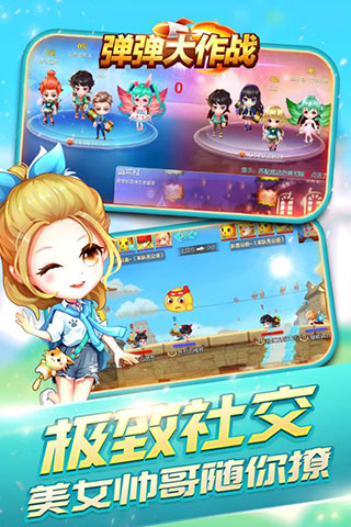 弹弹大作战安卓版是由四三九九研发的一款实时社交弹射手游,画面上,游戏采用卡通动漫风格绘制,简约精致的界面UI设计,Q萌可爱的人物形象立绘,丰富多彩的玩法设定,让玩家享受到极致的游戏体验。玩法上,弹弹大作战完美的续承了传统弹射游戏的核心竞技对战方式,更创新加入大乱斗、联赛竞技玩法以及全自由搭配的技能系统,让游戏更具精彩有趣。同时在活动玩法上,游戏不仅为玩家提供了1v1、大乱斗、公会战、团战以及副本战等丰富的系统玩法,在这里你可以在各种竞技玩法中磨炼自主操作技术,在联赛中大展身手,还有机会获取专属的限量武器哦。