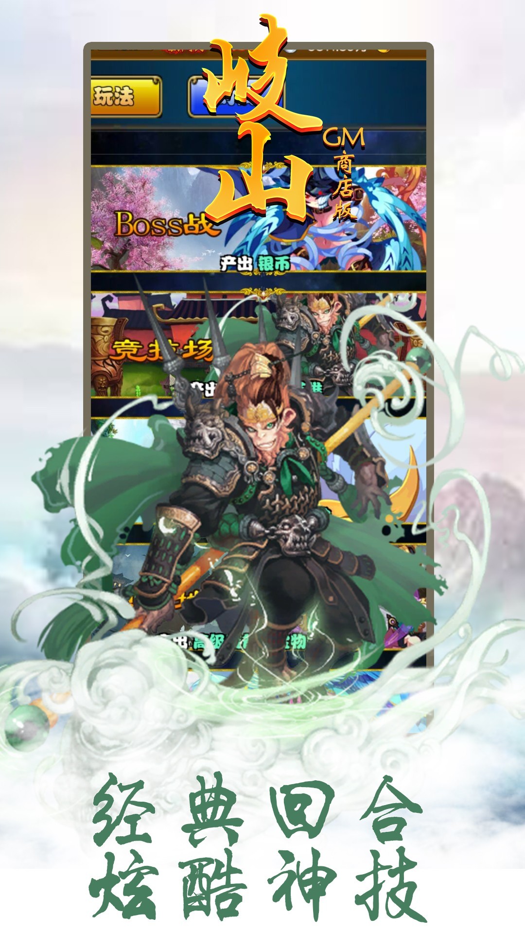 《岐山果盘版》是一款q版西游卡牌挂机休闲手游!全新的画风,浓浓的神话气息,便捷的挂机玩法带你勇闯西游九九八十一难。丰富的英雄成长系统搭配多样的技能,各种时装、宠物、法宝、阵法、伙伴加成给每个玩家带来不一样的体验。绚丽的造型,超多神将选择,巅峰竞技,帮派争霸,丰富的活动玩法,让你的西游冒险更加炫酷精彩。