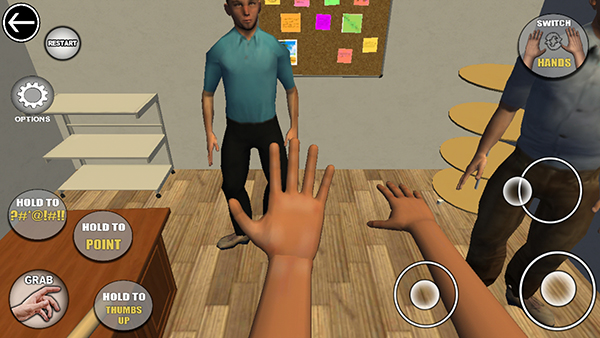 手掌模拟器手机版是一款趣味十足的模拟休闲游戏,采用清爽明亮的的第一视角画面,带给玩家更加直观的操作和精彩的视觉效果体验。在游戏中,玩家将扮演貌似不那么听话的一双手,将要完成组装手枪、冲锋 枪、挤牛奶等各种奇怪又有趣任务,玩家需要巧妙地通过上下、左右、旋转这三个控制按钮操控手掌摆出各种奇怪的动作,学习如何用手指工作,如何掌握填弹射击的技巧,努力成为最快的射击运动员,如何合作拆炸弹,如何与五湖四海的在线玩家配合等等。