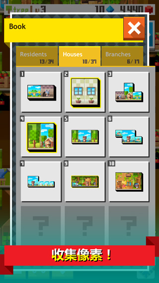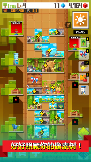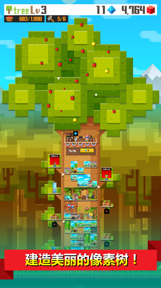 像素树中文版是一款画风非常可爱的休闲类游戏,在该游戏中玩家要在一棵树内建造各种各样的建筑,你还可以设计环境绿化,让小镇变得更加美丽动人,如果在合适的位置建造房屋还会有意外惊喜。除此之外,在像素树中还有类似于科技树的设定,其主要作用是可以解锁新式建筑物,在此期间玩家还能通过摇晃树来收集水果和金币,并且还需要玩家从树根的地图中找到能够为居民建造更多居所的隐藏图纸,其中更多未知冒险,还期待着玩家们慢慢去探索发现。