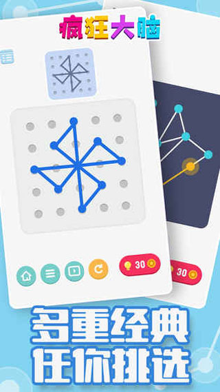 疯狂大脑app是一款非常经典且令人上瘾的游戏合集,该游戏采用极简的美术风格制作,玩法上也十分的多样有趣,在这里不但囊括了连线、七巧板、接水管、填方块、点线成画等12款大家常见的趣味小游戏,且超过3000个独到专业关卡设计绝对会让你乐此不疲,五大不同难度挑战,丰富多趣的任务达成,同时还有许许强者新颖的小游戏还在持续上线中,欢迎免费下载!