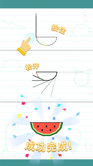玩法很简单:观察图形,然后估算把图形勾边需要的长度,然后在根据你按的时长会自动生成一根线,线的长度和勾勒图形的长图越吻合,得分就越高。和这个原理类似的还有英雄难过棍子关,不过棍子关都是横着的,可以目测一下,这个弯弯曲曲的要目测可就难多了。