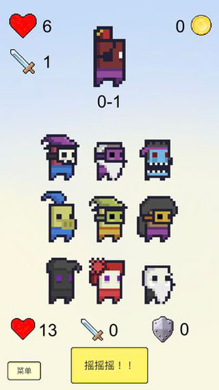 摇个英雄是一款题材新颖的RPG游戏,也是开发商“一起玩工作室”继《玩个锤子》,《打BOSS》之后推出的一款全新作品,该游戏画风简洁,玩法颇为创新,巧妙的将经典的老虎机玩法和RPG战斗规则相互结合,利用摇奖的功能召唤各种攻击、防御不同的英雄来进行战斗,同时横排或竖排英雄相同还有倍数增幅的效果,可谓是一款非常新颖,也十分仰仗运气的一款RPG游戏,喜欢的朋友快来免费下载体验吧!