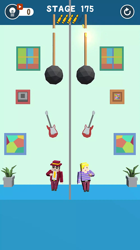 完美刺客是一款休闲益智的小游戏,游戏整体画风简洁,玩法简明意赅,在这里玩家所扮演的刺客,有着“死神”的特殊属性,你不可以直面射杀目标,而是需要借助当前场景下的其他道具来完成刺杀行动。