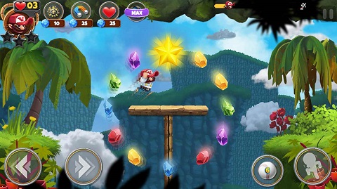 超级丛林跳跃游戏英文名为Super Jungle Jump,这是一款类似《超级马里奥》的平台跳跃类游戏,该游戏漂亮的高清画风,带有绿色大自然的丛林风貌,不仅对于玩家的视觉有着很好的享受,而且简单的休闲玩法也是玩家们不可错过的亮点。游戏中包含了不同主题的特色关卡等你挑战,虽然沿途风景很美,但不要忘了来这里的主要目的,收集宝石,积攒星星,最后通过一步步的冒险,解锁全部关卡,同时在沿途冒险过程中,还有未知的怪物不要碰撞哦。另外,超级丛林跳跃游戏中还有多款角色可选,并且通用的技能可以给予每位角色,强化技能,完成关卡,同样别忘了隐藏在每个关卡中的额外奖励哦!