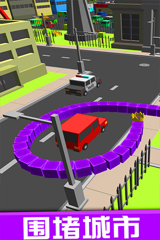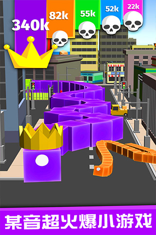 2、在这个简洁的城市场景之中,你可以不断的移动,找到更多的小蛇去吞噬