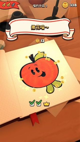 墨水喵是一款非常休闲的控制小黑猫进行各种美术创作的趣味游戏,这只小猫肚子里有着很多的墨水,无论是苹果的红色,还是香蕉的黄色,应有尽有,尽可能的满足玩家在涂鸦这块的需求,在这里就算你是一个没有任何绘画基础的玩家也是没有关系的,我们可以从最简单的简笔画开始,带领着玩家来到这里感受一下绘画的乐趣。游戏中提供了非常多颜色等着你去选择,比如一只苹果将它染成红色,但是在叶子的部位需要然后绿色,但你要记住,千万不要被画纸上的螺旋状物体或者是收割机类的碰到,不然你的墨水喵就会减少,无法达到三颗星。刚开始的时候玩家们可能对颜色的把控不是那么的好,但是这些都可以慢慢的培养,从而感受不同的绘画风格,不管是现代派还是印象派的风格都是可以把控住的。在墨水喵游戏中刚开始的时候你们可以先把轮廓勾勒出来,然后在进行细节的处理,这样可能会更好一些哟,非常的简单。