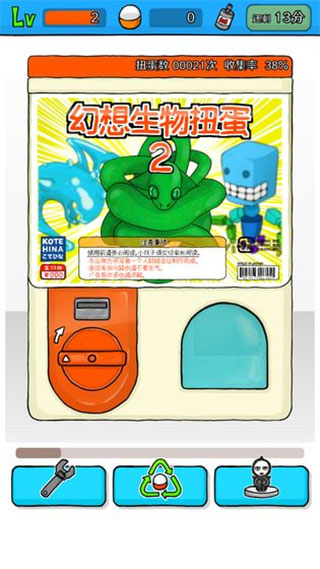 无限扭蛋中文版是kotehina制作,国内知名手游发行商扑家工作室代理推出的一款以扭蛋为主题的游戏,同时也是一款非常有趣的虚拟养成游戏,游戏画面清新简洁,独具特色,采用了卡通画风设计,并且玩家可以从扭蛋机之中获取扭蛋,开出各种各样的奇妙生物,非常适合喜欢收集类游戏的玩家。同时,游戏的具体玩法操作简单易上手,即便是新手小白也能轻松上手,且适用于在生活各个场景,无论是休闲时刻,还是等公交、地铁等时期,都能为你消磨无聊的时间。