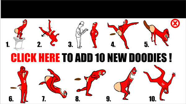 想对讨厌的人表示不满么?相对厌恶的人进行惩罚么?大便超人手机版中文版就是一款休闲娱乐的恶搞发泄小游戏,玩家在游戏的过程中将成为大便超人,以大便为主要武器,你可以在人偶上写上自己讨厌的人的名字,然后选择自己喜欢的模式,接下来大便超人就会用11种不同的方式狠狠的对付它(PS:画面太美,小编无法用言语形容,童鞋们自己脑补)。