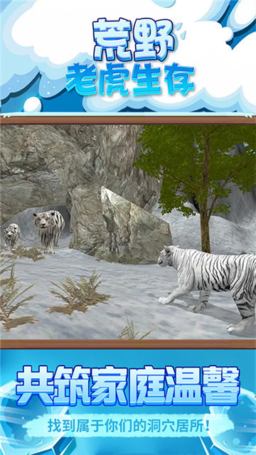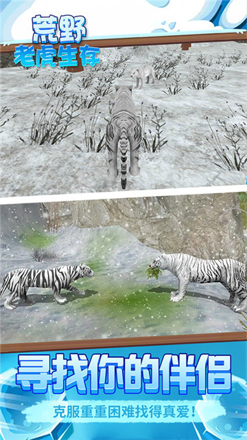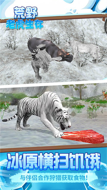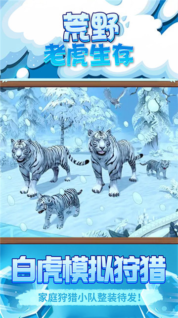 《荒野老虎生存》是一款模拟生存类的休闲单机手游,玩家需要在茫茫的白雪场地中以野生小白虎的角色进行狩猎行动,小老虎拥有极为出色的攻击力,在面对大部分凶猛的野兽的时候也能够拥有绝对的优势,但应该注意的是有些动物的领地不要随便闯入,即便你是百兽之王仍然招架不住多方的围剿。