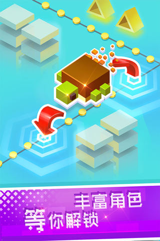 1、玩家可以控制着各种各样的角色,跳过所有障碍物,收集金币,不断刷新最好成绩。