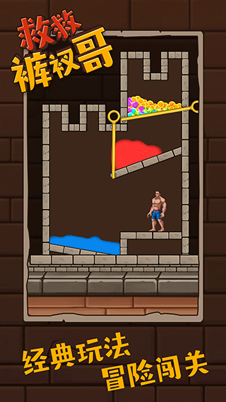 救救裤衩哥游戏是一款休闲益智通关类游戏,还记得各大平台的小广告出现的裤衩哥,需要我们进行移动各种横杆,帮助裤衩哥脱困,这款游戏便是这种类型的小游戏。游戏玩法简单,我方裤衩哥被困在了一个小空间内,有各种危险的怪兽和有害液体或者气体威胁裤衩哥的生命,我们需要通过移动机关帮助他成功躲过这些困难,从而逃脱出去。游戏非常有趣,每一关都有不同的关卡设计,通关的难度也会随着通关次数加大,开动你的智慧,解救裤衩哥,快来下载体验吧!