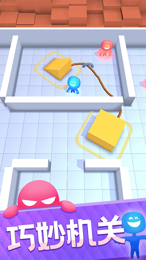 本游戏画风可爱,属于动画风格,玩家采用的是俯视角的状态开始玩,只要用手指朝想要的方向推动,玩家就能移动,每一关都有时间限制,限制到期前,小人需要推动箱子到指定地点封堵路口就能躲避抓捕,这么好玩的游戏,感兴趣的朋友一定要来下载体验啊。