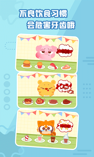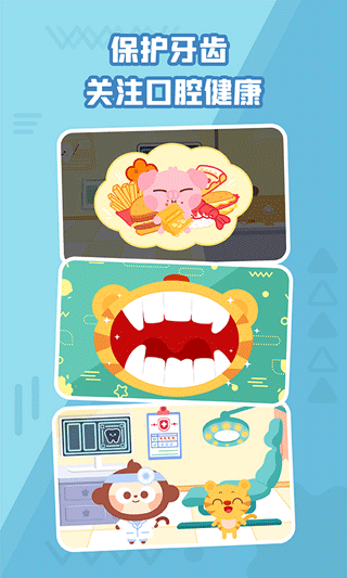 以可爱的卡通画面,真实模拟医院拔牙、洗牙、补牙、治疗的场景,让宝宝充分理解牙医的职业,克服恐惧。