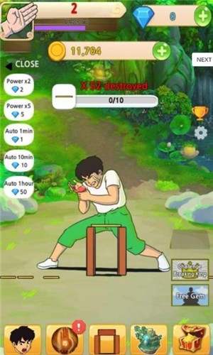 游戏中有一个角色在不断地劈砖,玩家需要精准控制劈砖的力度。