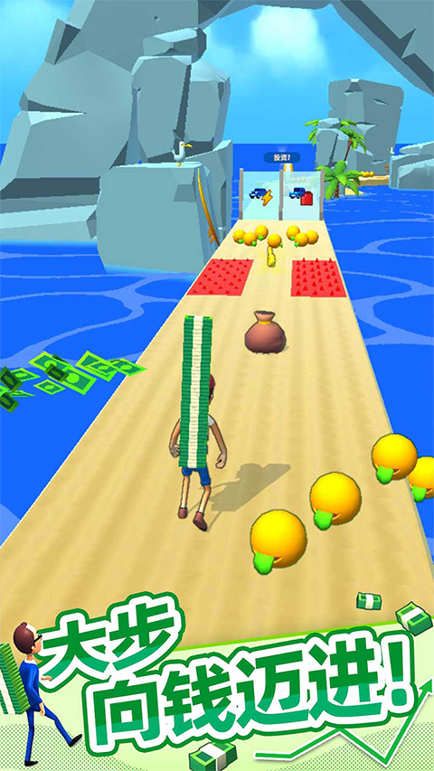 现实生活挣钱太辛苦?在家很无聊?大步向钱游戏让你在虚拟世界里得到超多美元奖励。游戏中,我们需要帮助主人公领取摆在他面前的一堆堆钱,玩家的操作很简单,控制你的人物往前走,在前进的过程中你会遇到很多很多的美元,用这些美元进行投资吧,一切都是随机的,一切都靠运气。游戏采用的是卡通的画风,轻松有趣,有手就行,这么搞笑的游戏,大家喜欢的话就快来下载游玩吧!