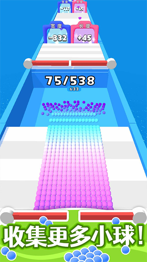 2、前进的道路上有很多的物品可以选择来收集,但是要注意小球的容量不要收集太多物品。