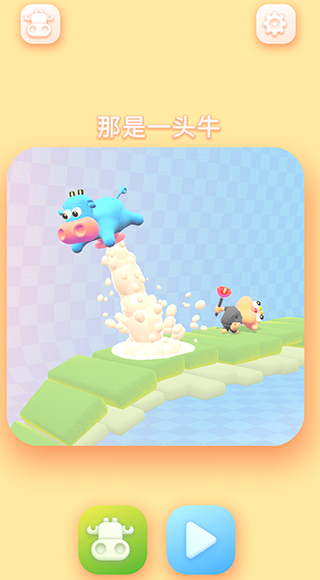 1、你扮演一头小奶牛,它可以靠自己的牛奶喷射飞行。转动奶牛给她飞行的方向。2、使用牛奶喷射器移动更快,飞得更高,推动物理物体,克服障碍,并用柱塞击败敌人。