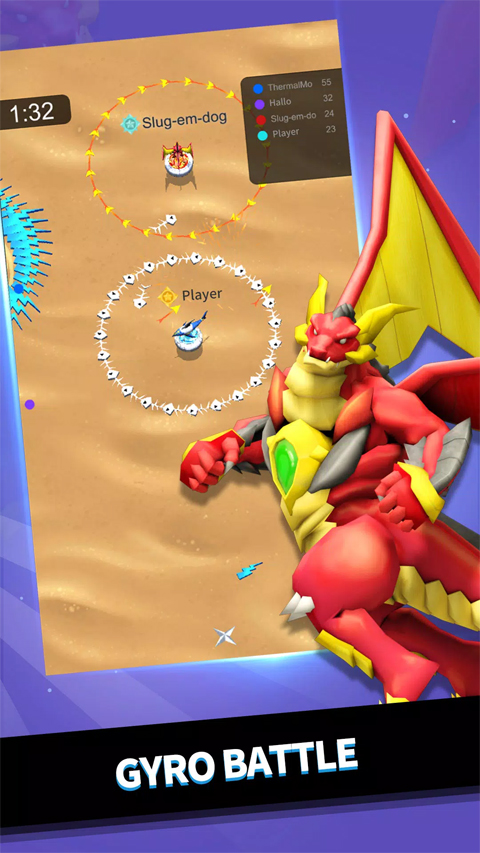 1、只需要单个手指按住屏幕,就可操控陀螺在地图上不断旋转并和其它陀螺进行对战。