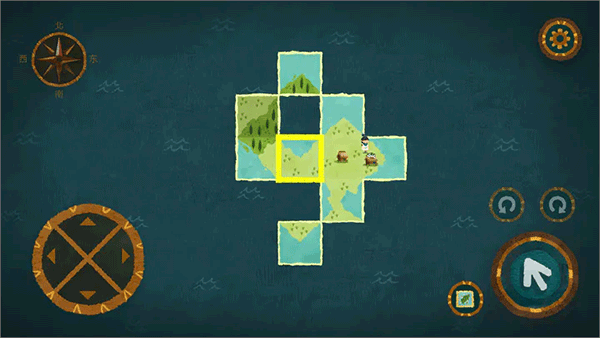 2、不同的地图世界里暗藏玄机,隐秘之处可能就是地图碎片散布之处。观察这些地图后,卡朵就可以依赖自己的能力,将地图旋转,首尾相接,连成一片新大陆。这片大陆没有指定的方向,只有卡朵自己用手将这些碎片连起,方可到达彼方。