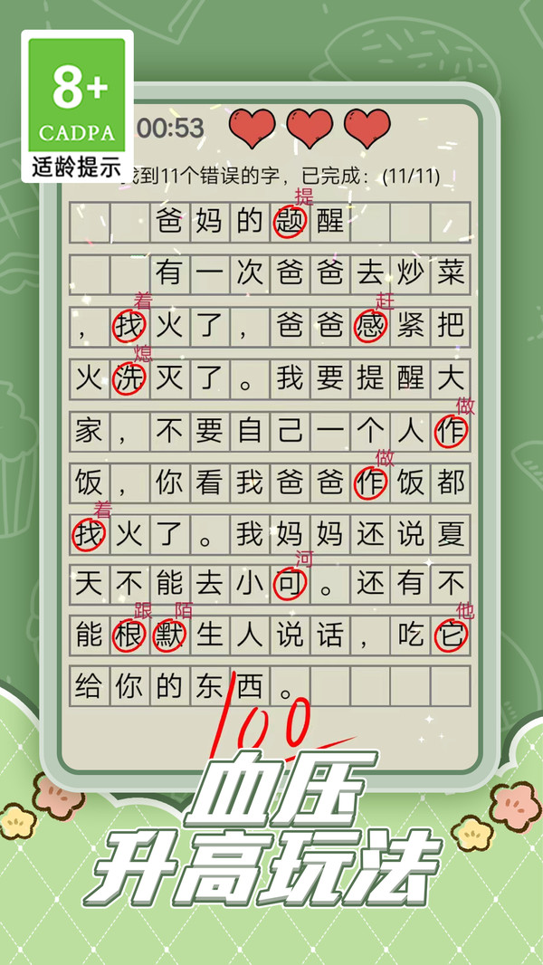 2、在关卡的挑战中你需要找出所有的错别字,让你体验到不一样的游戏乐趣。
