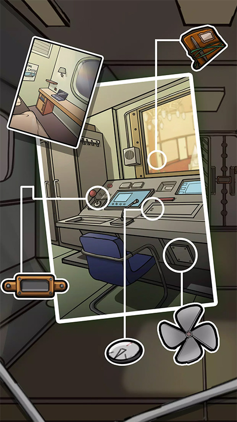 抽屉上有英文字母密码,上面标有1579,点窗户,看到机翼上的英文FLYING CASTELE,得到FNCS,打开抽屉,得螺丝刀,用螺丝刀打开通风口。