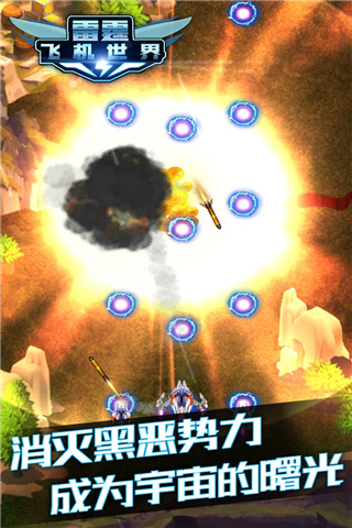 雷霆飞机世界是一款经典好玩的太空射击游戏,游戏画面采用的是3D科幻的风格,由一流的美术画师精心设计,再加上绚丽的色彩搭配,给玩家呈现出了一个绚烂迷人的星际银河。而且,这款游戏的玩法也非常的简单,在游戏中,玩家需要驾驶自己的飞机在关卡中去击败对方所有的飞机,你可以通过手指滑动非常来躲避对方的子弹,避免飞机过度损坏,还需要集中火力,使用不同的子弹攻击,击败小兵,精英最终挑战关卡boss。当然,在对战过程中玩家也需要注意拾取地图上的道具包,它们有的会加强你的火力有的会提供给你护盾,所以千万不要错过他们哦。。